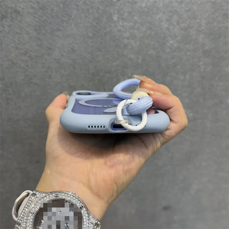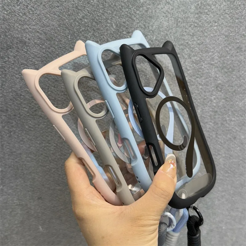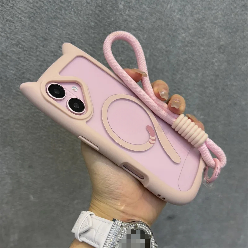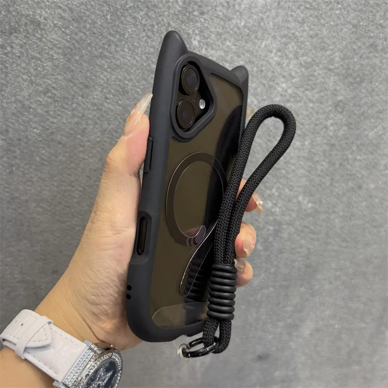 Cute Cat Ear With Wrist Strap Magnetic Case for iPhone